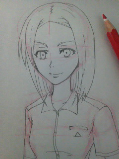赤でアタリとって鉛筆で下書きしたもの。