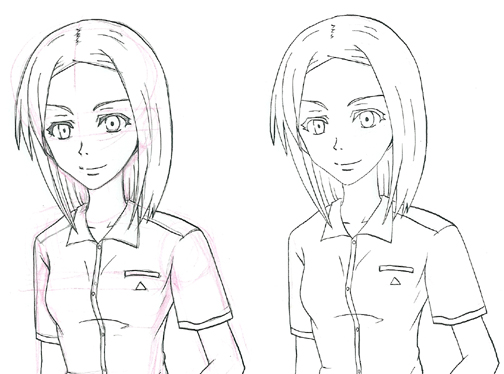 左が下書きにペン入れして消しゴムで消す前の絵。